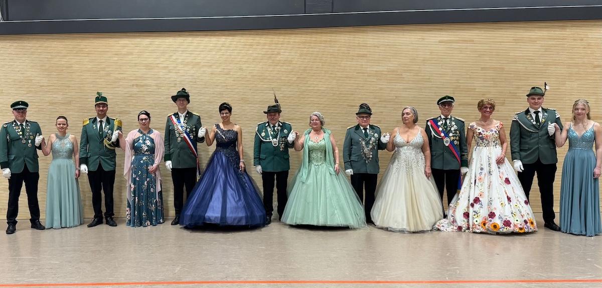 Aus Kempen nahmen König Alois und Anke Plückebaum mit ihrem Hofstaat, bestehend aus Sven-Eric Köhlhoff und Ina Köhlhoff sowie Dirk Göke und Sarah Göke, am Festball in Altenbeken teil. Begleitet wurden sie von ihrem Kronprinzen Marvin Stumpenhagen und seiner Kronprinzessin Leni Möller.