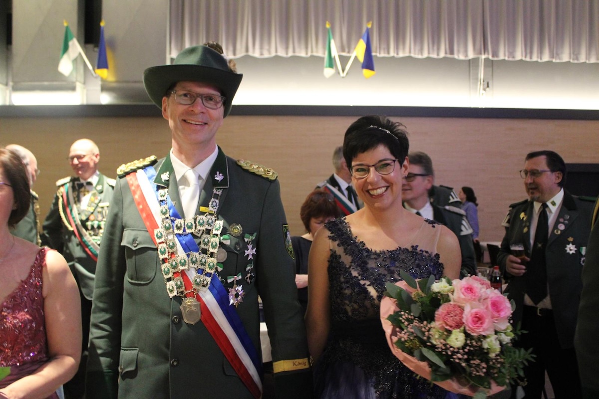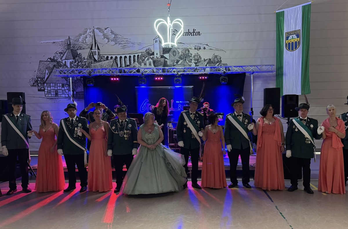 Aus Kempen nahmen König Alois und Anke Plückebaum mit ihrem Hofstaat, bestehend aus Sven-Eric Köhlhoff und Ina Köhlhoff sowie Dirk Göke und Sarah Göke, am Festball in Altenbeken teil. Begleitet wurden sie von ihrem Kronprinzen Marvin Stumpenhagen und seiner Kronprinzessin Leni Möller.